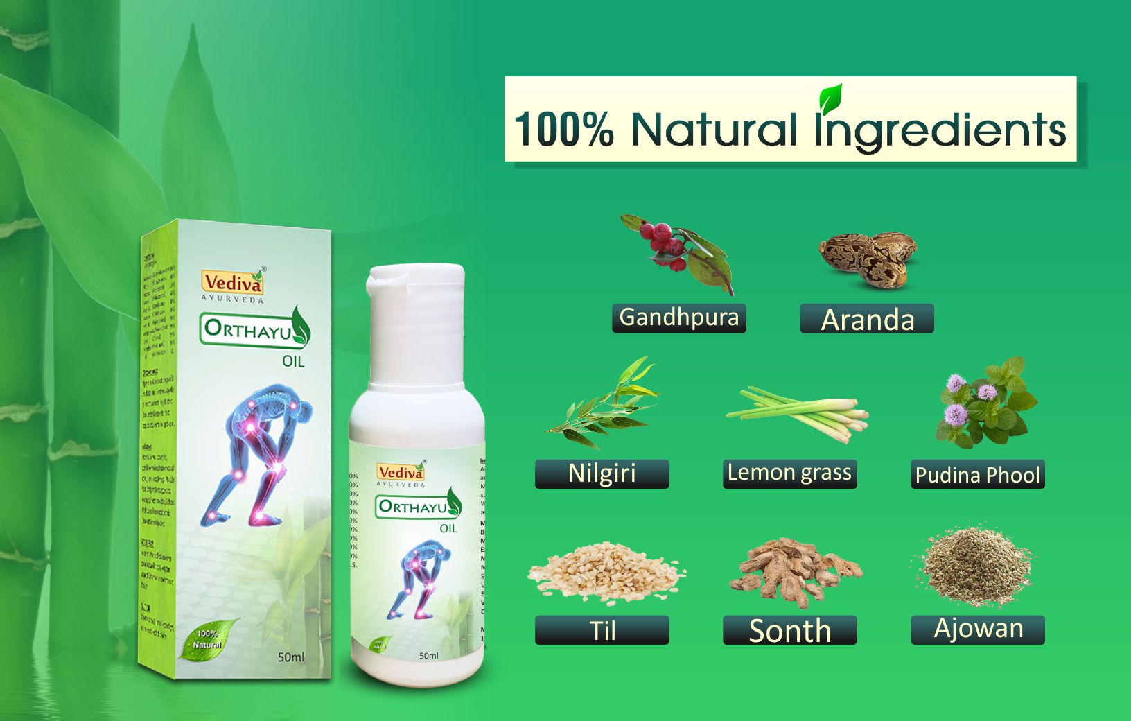 Vediva Orthayu oil is one of a kind product composed of selected herbs. It is formulated after a detailed study of Indian traditional remedies and obviously with knowledge from Ayurveda. Ayurveda has undoubtedly a proven track record in resolving long-term medical issues like joint pain. Orthayu oil mainly constitutes many herbal oils specially picked and blended to solve long-term pains in joints, arms, neck, shoulders, back, legs, arthritis and moreover all forms of arthritis. It is equally useful in any other kind of muscular pain too. It also works on swelling as it generates a soothing effect and relaxes the muscles.